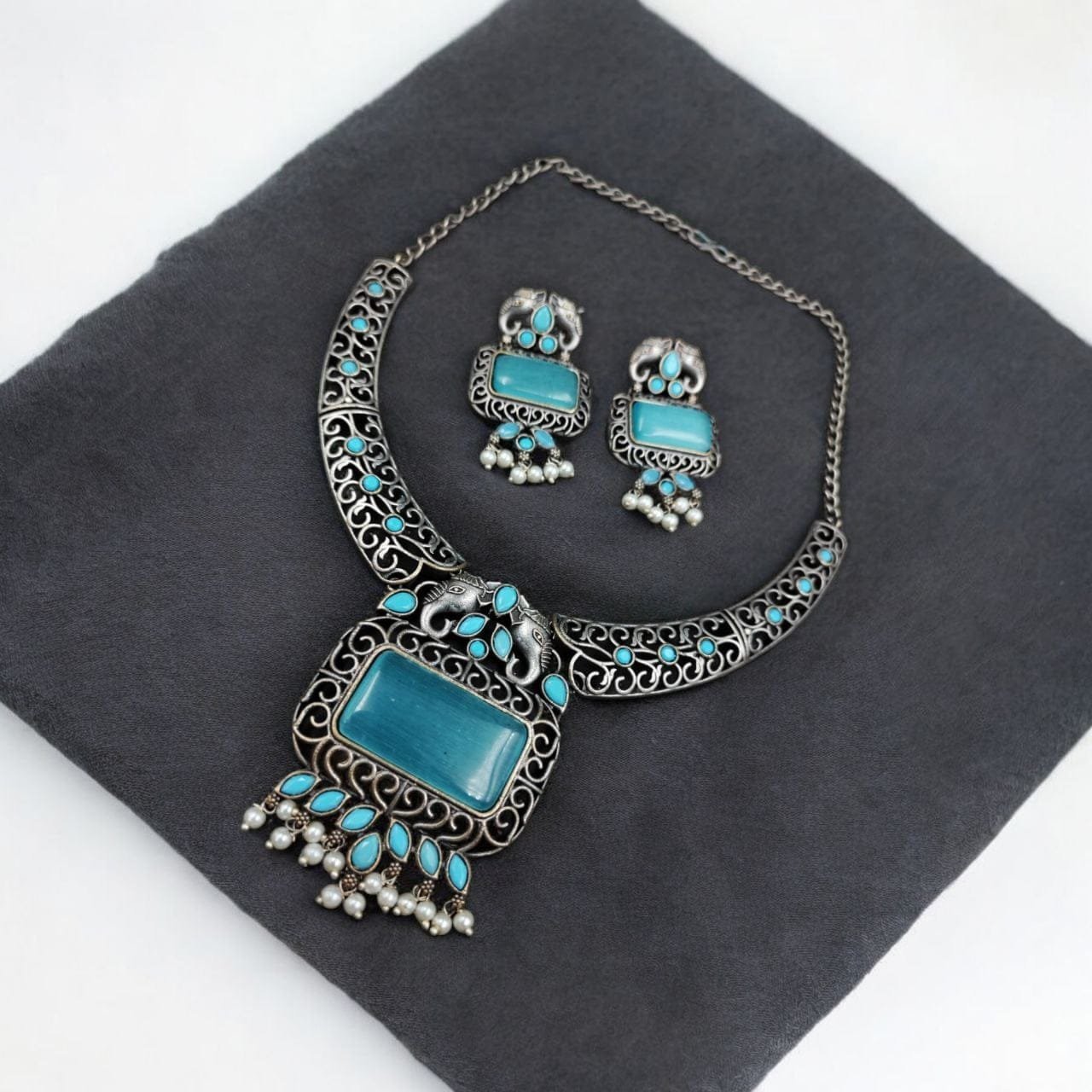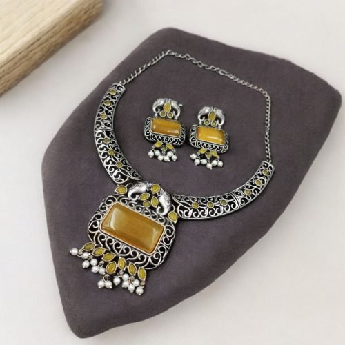 Elegant Bird Design Silver Replica Necklace Set | Ethnic Monalisa Stone Jewellery – My Fashion Original price was: ₹1,999.00.Current price is: ₹999.00.