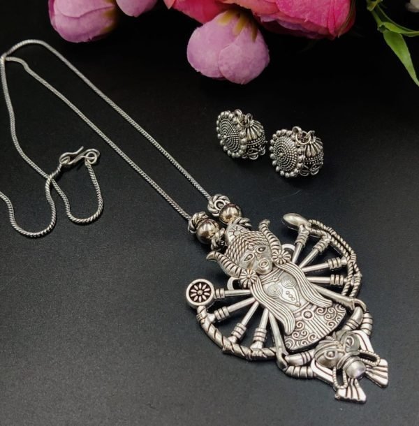 Handmade Beautiful Oxidised Chain Necklace with Jhumka Earrings -Navratri Collection