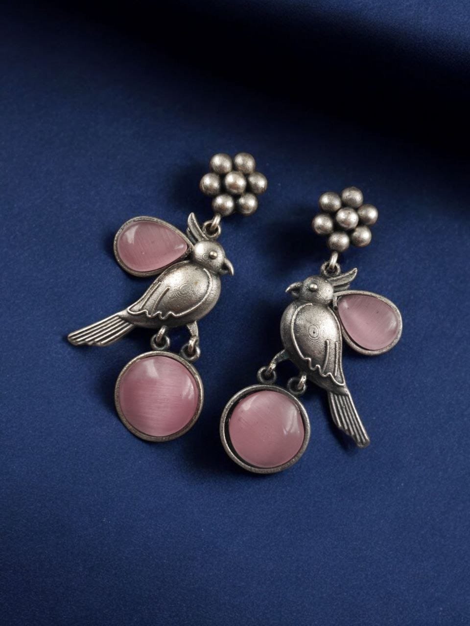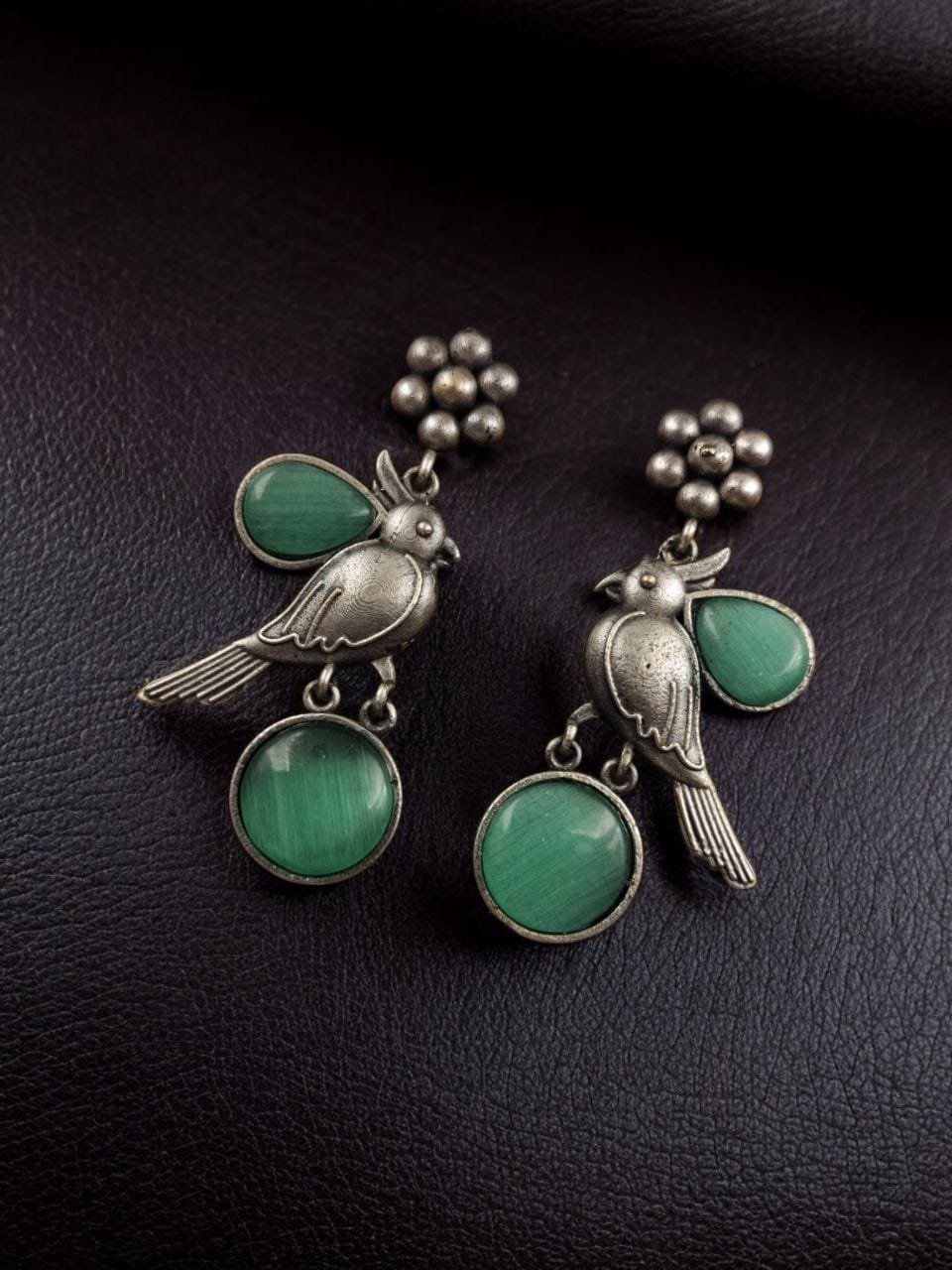 Silver Replica Bird Oxidized Earrings – Antique Stone Earrings for Women | My Fashion